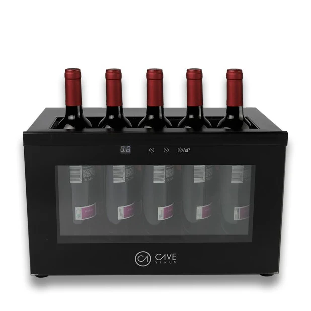 El enfriador de barra Cavevinum CV-7DN es la solución perfecta en tu bar, restaurante y paraexhibir vinos tintos en espacios reducido.Con capacidad para 5 botellas de 75 cl o 3 Magnum de 1,5 L, su sistema de refrigeración termoeléctrica mantiene una temperatura regulable entre 12°C y 18°C. Su diseño compacto y elegante, junto con su bajo consumo energético (0,5 kWh) y display digital intuitivo, la convierten en una solución práctica para bares, restaurantes o el hogar.