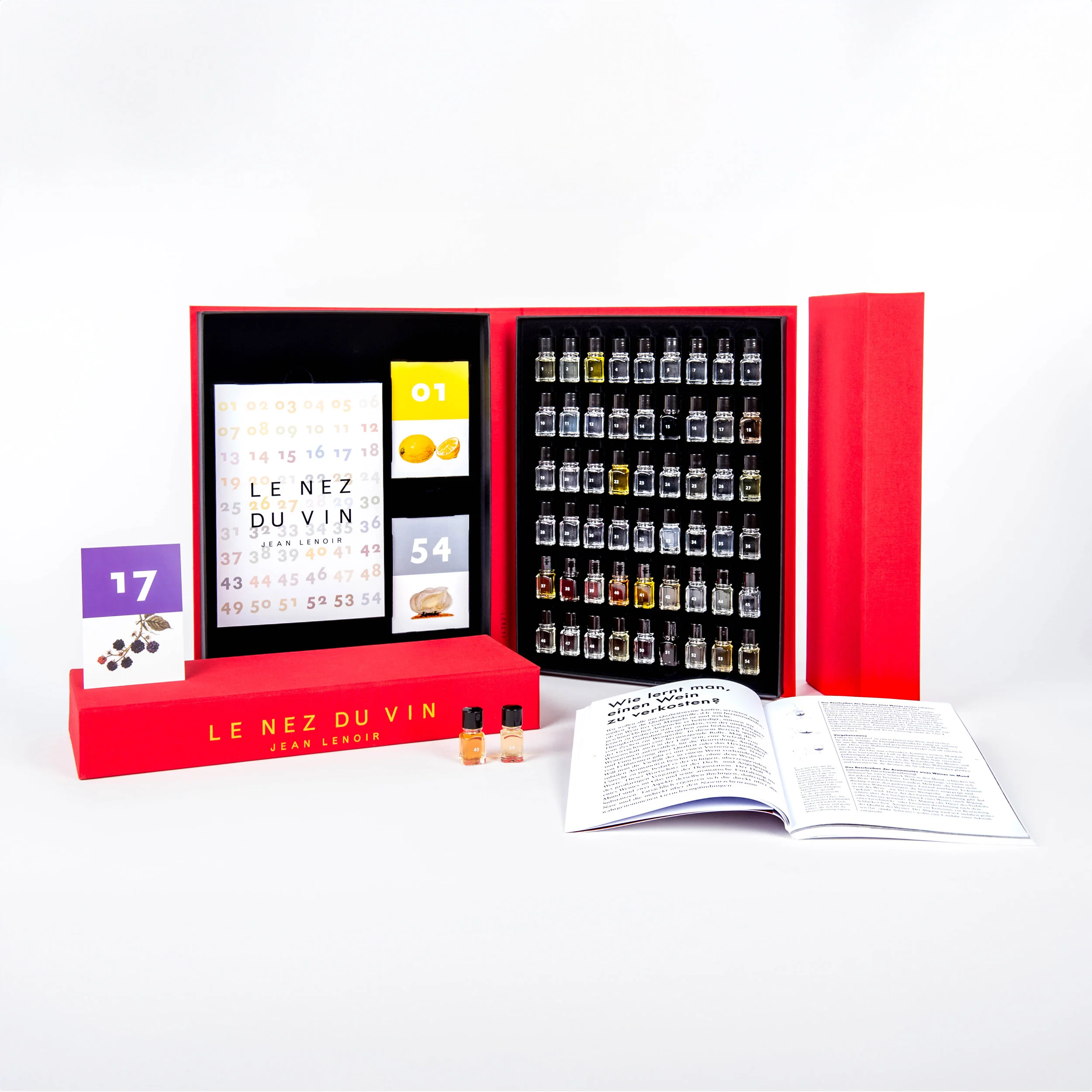 - Presentados en un libro objeto muy refinado, 54 aromas de gran calidad tomarán vida en su memoria olfativa y encontrarán una verdadera resonancia en los grandes vinos.